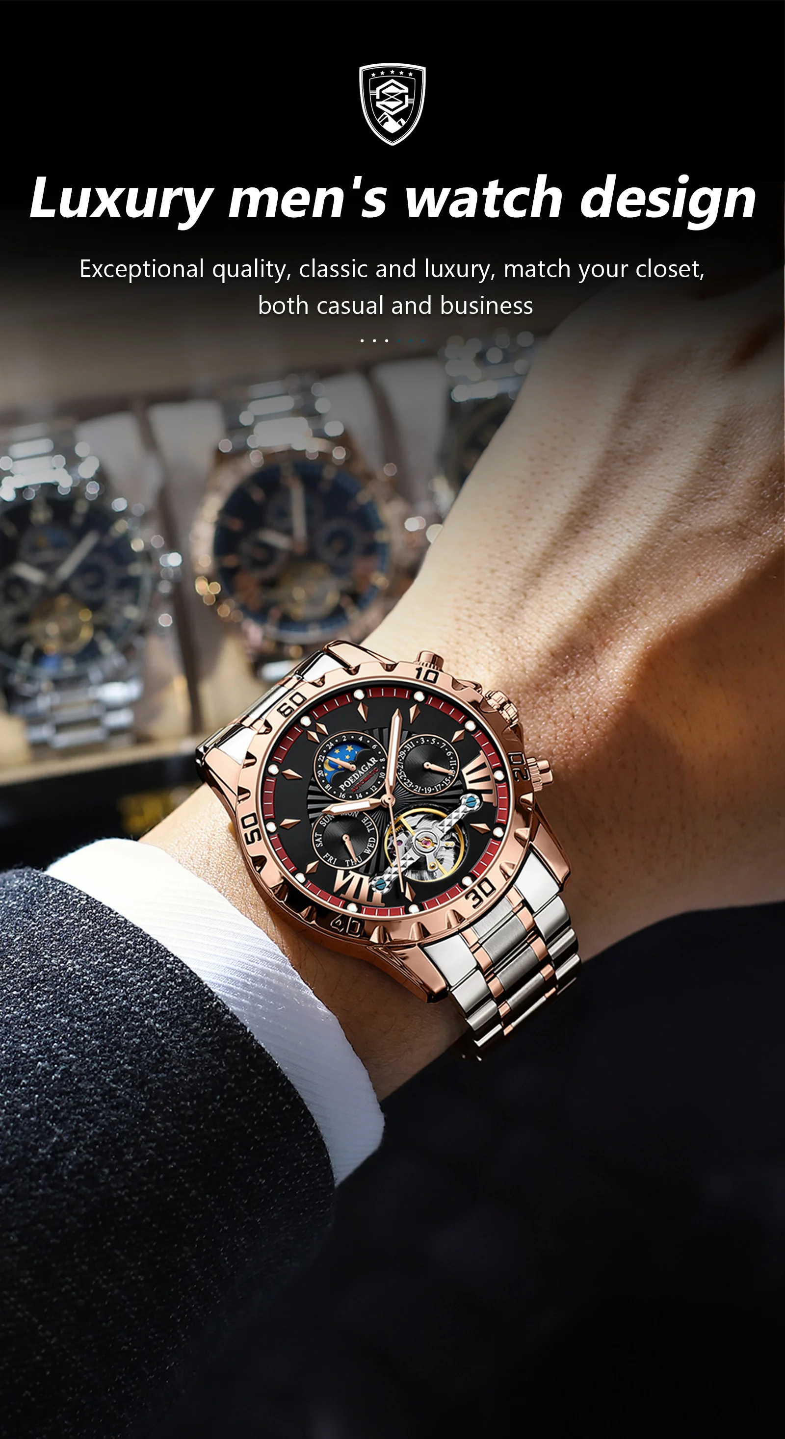 Poganja jo gibanje vašega zapestja – avtomatski mehanizem ohranja uro natančno brez potrebe po bateriji.