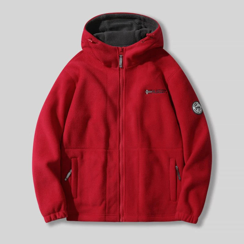IZJEMNA TOPELNOST - Dvojnoobložena jakna z kapuco iz umetne flise za moške je zasnovana tako, da zagotavlja izjemno topelnost, zahvaljujoč svojemu dvojnoobložnemu vložku iz umetne flise. Ta mekana in izolirajoča material zagotavlja, da ostane udobno topelga tudi v najhladnejših vremenskih pogojih.