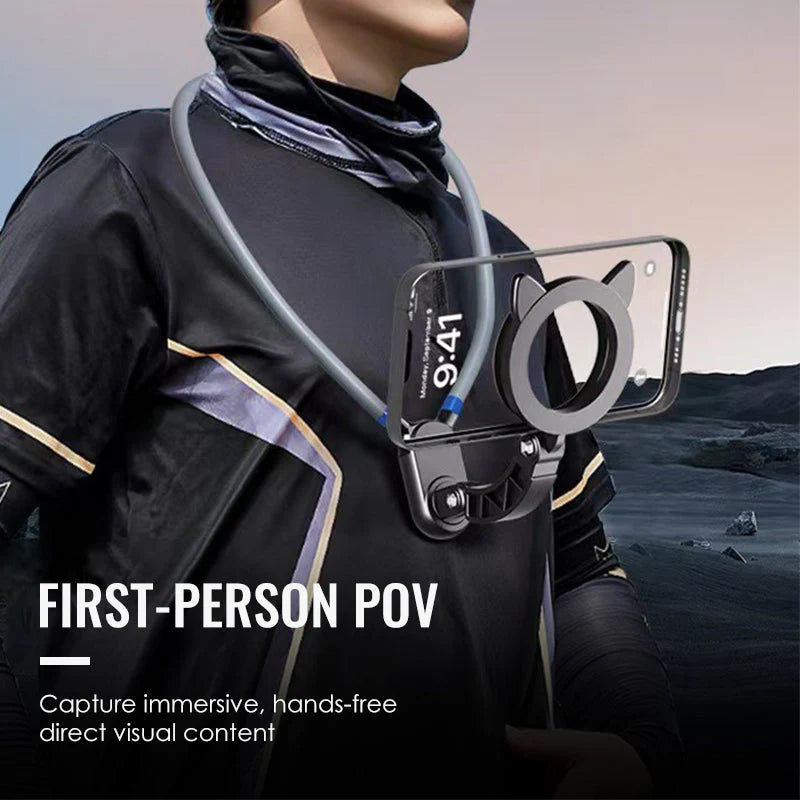 ERGONOMSKI IN UDOBEN — Namenjen dolgotrajnemu nošenju, držalnik ima elastično konstrukcijo, ki se naravno prilagaja vratu. Površina je prekrita z mehkim, koži prijazen silikonom, kar zagotavlja udobno prilagajanje in stabilno podporno, brez poškodb na koži. Ta konstrukcija minimalizira utrujenje. Lahko se osredotočite na vsebino, ne pa na opremo.